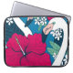Tropiska Flamingos: Hibiscus Plumeria Background. Laptop Fodral