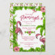 Tropiska flamingos och blommor inbjudan