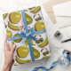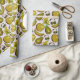 Tropiska frukter, sömlös gult mönster och vit presentpapper