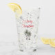 Dricksglas i Tropical Beach God jul, med illustration av handflatan träd och manustypografi. Med anpassadet text lägger du till egen information. Ett festligt tillägg till din julfest eller firande.