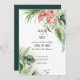 Tropiska gröna blad och anthurium rosa blommor inbjudningar