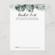 Dessa tropiska gröna vita bröllops hinklista kort är den perfekta aktiviteten för en rustik bröllopsfest eller möhippa. Designen har gröna palmblad buketter med vita vackra blommor.