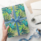 Tropiska löv fronder i handflatan i blått och grönt som är pappra, roligt för alla tillfälle.