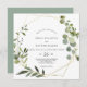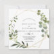 Den tropiska grönten lövs bröllopsinbjudan är perfekt för ett bröllop. Utformningen har handmålade vackra löv för grönt, som lägger till ett guld-geometriskt ram.