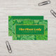 En affärskort med tropiskt utseende med snyggt och grönt vid handflatan lämnar mönster. Kortets framsida har en låda med digital effekt guld. Anpassa enkelt det här fantastiska affärskortet.