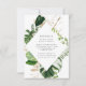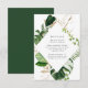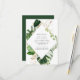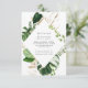 Snyggt, djurutrymmeskort i elegant bröllop med dina bröllop-uppgifter omgivna av ett geometriskt ram av vattenfärgen monstera löv och faux foil och löv från guld och grönt. Anpassa kortet genom att lägga till viktig information, t.ex. information om platsreservationer osv.