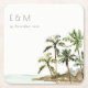 Tropiska Handflatan Beach Sand Monogram Bröllop Underlägg Papper Kvadrat