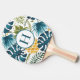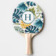 Tropiska handflatan löv guld panasblått monogram pingisracket