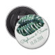 Tropical Watercolor Monstera Lövs Save the Date Magnetic Flaska-öppnare med en unik modern och minimal återtro-strandtypografi, och chic mutad grönt - ett roligt tillägg till dina datumkort eller keepsaké för din brudens sida när du frågar dem: "Kommer du att vara min bridesmaid eller groomsman?" Besök den Pappra Grape Destinations Zazzle Designer Shop för att koordinera målbröllop, strandbröllop eller bröllopsdag av tropiska öteman för grönt.