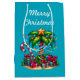 Mjuk väska med en bild av säsong helgdag. En tropisk träd i handflatan dekorerade i Festive ljus med en stjärna överst. En stor röd och vit candy cane som sticker ut ur sanden. Julklapp under träd. Viktigt och roligt.