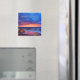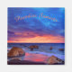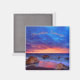 Vacker tropisk solnedgång med nyanser av rosa och orange färg i ett mörk blått grumligt himlar. Stora sten ligger på stranden med sandstrand i blöten med reflektioner av solljuset på havet vatten.