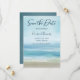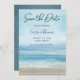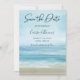 Tropiskt badbröllop Spara datumkortet har en abstrakt med vattenfärg som är färgad av blått och vitt hav vinkart. Perfekt för nautiska, resande-, strand-, kust- och sommartemat bröllop. Originalteckningen KL Lagrar.