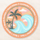 Enkelt fylligt tittar dryckespåsk med färgstark återbildning av roligt Illustration av grönt handflatan träd, blått vinkara, orange sol och gult och solstrålning. Omavrundat av ord relaterat till sommartider... Vågar, Beach Party, Good Vibes, Cocktails, Summer, Friends, Laughn, Sol och Surfa. Verkligen coola tallrikar för använda under badstranden på bakgården party och för att ha i lagrar vid ditt tåg eller på poolside tiki pub.