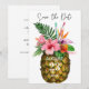 Tropiska hawaiiska Blommigten och ananas Spara dat Datumet