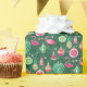 Gröntens tropiska julklapp med prydnadsföremål som flamingos eller tropiska frukter. Den guld glitter som används i detta tryck simuleras, inte glitter. Originalteckningar efter Marketa Stengl.