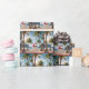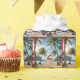 Cute sand snögubbe med Jultomten-tak på en strand med handflatan träd