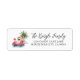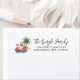 Tropical Santa Return-adressetikett. Denna festive Return Address-etikett har en avslappnad Jultomten-låsning i en rosa flamingo-floaty, omgiven av tropiska helgdag som en handflatan träd som dekoreras med prydnadsföremål, ett glatt hav vinkarare och en liten ö i bakgrunden. Den charmerande vattenfärgsgrafiken placeras på den lämnat färgen, medan ditt namn och adress visas på högerna i en blandning av skript och serif typsnitt, ge det en avslappnad än eleganten känner. Perfekt för att lägga till lite surfa och sand till dina julkort eller inbjudningar till julfesten. Den här etiketten är perfekt för dem som bor i tropiska ställe som Florida, Hawaii eller Bahamas - eller för alla som kärlekar en bijabisk helgdag.