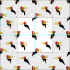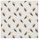 Julväv med tropiskt strandtema, med söta tukaner som bär röda tomter på vit bakgrund