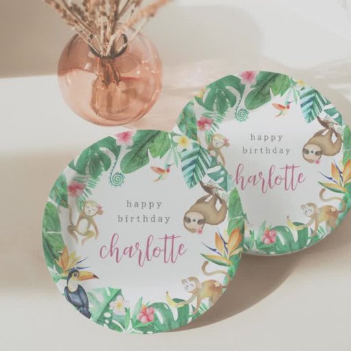 Ställ in scenen för ditt barns kallaste tropiska djungelns temade födelsedagsfest med dessa färgstarka pappra blöjor av personlig. Konstruktionen av öar har monstera löv och grönt vattenfärgsblad med apor, en slav, en hummerfågel och en papegoja. Färgstarka accenter för tropisk blommigt kompletterar utformningen. Anpassa med ditt barns namn i ett slitande skript för rosa, tillsammans med party tillfälle.