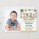 Safari tog födelsedag med tropisk grönt och vattenfärgsgrey i guld och en grupp söta djungeldjur