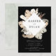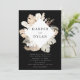 Elegant, moderna inbjudningar till tropiska bröllop med bröllop namn omgivna av en kvadrat ram av vattenfärgblommor och tropisk löv i vita, bruna, beige, rost, bruna, sage och mörk grönt nyanser. Anpassa inbjudan genom att lägga till informationen om bröllop nedan i vit text mot svart bakgrund. Den tropiska bröllopsinbjudningen går tillbaka till en grönt vattenfärgsbakgrund.