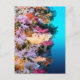 Vackra tropiska undervattenskoraller på en rev omgiven av ren, blå vatten, med sol i ljussken i himlar.