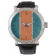När du kombinerar färg och stil visas svarta siffror över en akvariebakgrund, orange och vit bakgrund. Du ställer in standarden för mode när du bäror klockan.