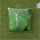 Utomhus- kudde i ett mönster av den jätte- "elefanten gå i ax" löv (philodendronen McDowell) - digital målning som baseras på ett foto av frodig djungellövverk