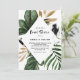 Familjen inbjudan och vänner till möhippan med inbjudan till anpassadet. Denna tropiska inbjudan innehåller vattenfärgbilder av tropiska löv och växter med faux-guld-folie löv och svarta penselvattenfärgshalter. Perfekt för sommartid och möhippor för möhippa.