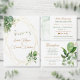Spara om bröllop-utgifter med den här "Front & Back"-bröllopsinbjudan Tropical Grönt & Guld Geometric Ram Watercolor Monstera Löv designbröllopsinbjudningskort.
