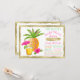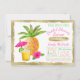 Tropisk inbjudningskort för möhippan med söt ananas, tropisk dryck och hibiscus blomma på ett vackert guld målat kant-bakgrund. Den här luau-noden inbjudningskort för möhippan är lätt att anpassa för ditt evenemang genom att helt enkelt lägga till dina uppgifter i teckensnittet stil och i den text du väljer. Du kan också lägga till en bakgrund till färg. Detta är ett tryckt format utan egentlig folie, glitter etc.