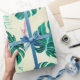 Stora tropiska löv från handflatan och ett handskriftsskript från stil över en vattenfärg tvättat bakgrundsgåva från kräm i papper form. +++++++++ Lämpligt för tropiska tematiska födelsedagar, årsdagar, sommargåvor i bröllop.