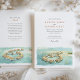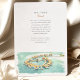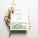 Inbjudan dina gäster till en dröm i Karibien firande med den här andningspräglade bröllopsinbjudan, med de ikoniska övervattensbungalökarna på Sandals Montego Bay, Jamaica. I teckningen återges på ett vackert sätt den charmerande bild som tak-bungalows arrangerade i en unik hjärtformad eller cirkelformad form över den kristallklara turkosen och aqua vatten i Karibiska havet. I en mjuk, drömmande vattenfärg stil fångar scenen det sanna skönheten i detta tropiska paradis, med sandig, ytlig, avlägsen, grönt tropisk löv och ett mjukt himmel. Inbjudan är perfekt för ett lyxgigt destinationsbröllop, en romantisk strandceremoni eller ett par som drömmer om en örymning. Den eleganta informationen om bröllop på framsidan presenter, medan den omvända sidan innehåller "Finer-information" för gästinformation och fortsätter med den idylliska ögrafiken. Paletten i färg är en stillastående blandning av turkos, akvarier, cerulenblått, sandbeige, ljusbrun för det överskuggade tak, gräddvita för bungalows och olika skuggor av lush grönt.