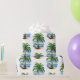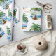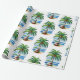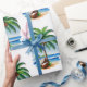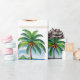 Genomskinlig bakgrundskonkosnöt träd på en tropisk ö med havet i coola