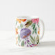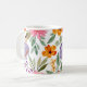 Det moderna Blommönstret Kaffe-Mugg med levande tropiska orangar, shock rosa, lilaska blommor och botaniska grönområden.