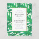 Fira i stil med dessa stilrena och mycket trendiga bröllopskort för att spara datum. Designen har tropiska palmblad i vattenfärg med en chic ram i guldpregling och trendig typsnittsformulering. Denna design är enkel att anpassa med din speciella händelses formulering och dina gäster kommer att vara överlyckliga när de får dessa fantastiska vykort.
