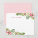 Personlig platt horisontell anteckningskarta med ett anpassat förnamn i modern rosa text, accentuerat i hörnen med frodiga gröna tropiska palmkvistar och rosa hibiskusblommor. En luftig, färgrik och flickig brevpapperdesign för sommartid.