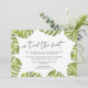 Trendig tropisk design med gröna palmer och en modern handskriven typografi, perfekt för ett strandbröllop eller en sommarfest.