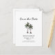 Handritat bröllop Spara datum ankomstkort med en enkel palmträd teckning och enkel design. Med anpassningsbara bokstäver kan du lägga till dina namn och bröllopsinformation. Perfekt för att planera din speciella dag med en tropisk destination.