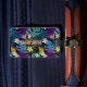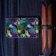 Färgfulla tropiska löv av handflatan träd, monstera, plumeriablommor och paradisfåglar.