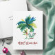 De tropiska stranden som viftar med julkort har en öinspirerad exotisk handflatan träd och söt helgdag Santa. "Merry Beach-mas" i ord är försedd med handskrivna bokstäver. Kortet öppnas för att visa en rik bär röd färg. Använda mallen fält för att lägga till personligen hälsning. Ett charmerande men roligt val att skicka till vänner och familj den här julhelgen. Om du är tittar för fler skygga julkortsutformningar, gå till www.zazzle.com/dotellabelle Unik vattenfärgsgrast och design av Victoria Grigaliunas från Do Berätta för A Belle.