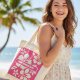 Torka solljus överallt 🌞 👜 med den tropiska rosan, strandblommor till 🌸 🌴. Perfekt för 🛍️, 🏖️ eller som snyggt 🎁. Med redigerbar text kan du lägga till namn, plats eller ✍️.