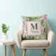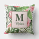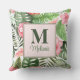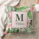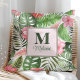 Tropiska Rosa Flowers och Monstera Monogram Kudde