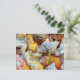 Fotografivykort. Många söt och färgstarka snäckor täcker framsidan av detta blankkort. Här ingår en brun fläckig snäcka, mask-snäcka, naticas och kammusslor.