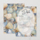 Börja en resa av elegans och stillhet med vår exklusiva infogningskort för bröllupsinformation utsmyckad med mjuka akvarellkluster av snigelskal i en hypnotiserande palett av havsblått, krämfärg, terrakotta-rust, beige, tan och rosafärgad. De mjuka färgerna dansar graciöst mot en mjuk vit oval oskärpa, vilket ger den perfekta bakgrunden för modern text som utan ansträngning fångar essensen av er kärlekshistoria. Med den känsliga balansen mellan fängslande design och läsbarhet sätter denna design tonen för en fest som är lika unik som er band. Vänd på kortet för att återigen avslöja den förtrollande snigelskalsbakgrunden och fullborda designens harmoni. Bjud in era nära och