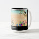 Ge kaffet en känsla av lugn med det strandtemade mugg, med vibrerande tropiska blommor, en fräschande dryck, en avslappnande hammock och graciösa fåglar. Det är en vacker påminnelse om lugn. Med anpassadets textalternativ kan du lägga till namn, citattecken eller speciella meddelanden för att göra det unikt för dig.