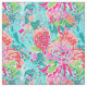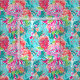 En sömlös diskett mönster med rosa, orange, korall och röda blommor på en fyrkantig grönt, försedd med runda stänk och vita prickar. Utformningen har ett handmålat utseende som kombinerar vibrant blommigt inslag med vismiskt stänk för att skapa en livlig och snyggt effekt.