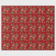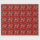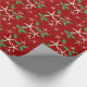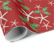 Tropiskt julomslag pappert. Mörk röd färg med en mönster av vit stjärnfisk och grönt, holly och röda bär. Kvalitet papper på en rulle för att fira helgdagarna med ett kusttema.