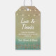 Tropiska stjärtfenor +Märkre från Seashell Bröllop Tack - Du kan ändra ordalydelsen och användan för dessa för repetitionsmiddagar, möhippor med mera. Strängar ljus, guld, havsbottnar och stjärnfiskar med vacker strandbakgrund i skuggor av blått, grönt, tan och tips från andra färg. Se samlingen med matchande fullt nedan i den här designen.