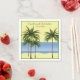 Bröllop med tropiska handflatan träd på stranden med sand och det blå havets vatten i bakgrunden, tillsammans med bruden och groomen namn ovanför i himmel. En roligt, sommar, destination eller ökonstruktion för en strand i bröllop eller förlovning party. Anpassa med namn i bruden och trimmen, eller någon formulering, behålla eller borttagningsdatum, eller ta bort alla för att lämna rena. Anpassa till tillfälle, händelse eller party. Produktalternativ finns i ditt val av napkin-stilar och storlek.
